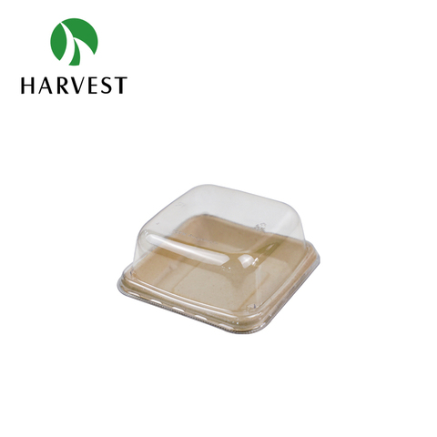 6-дюймовый поднос для пищевых продуктов из волокнистого волокна, квадратный поднос для десерта из жома, сахарного тростника с купольной крышкой